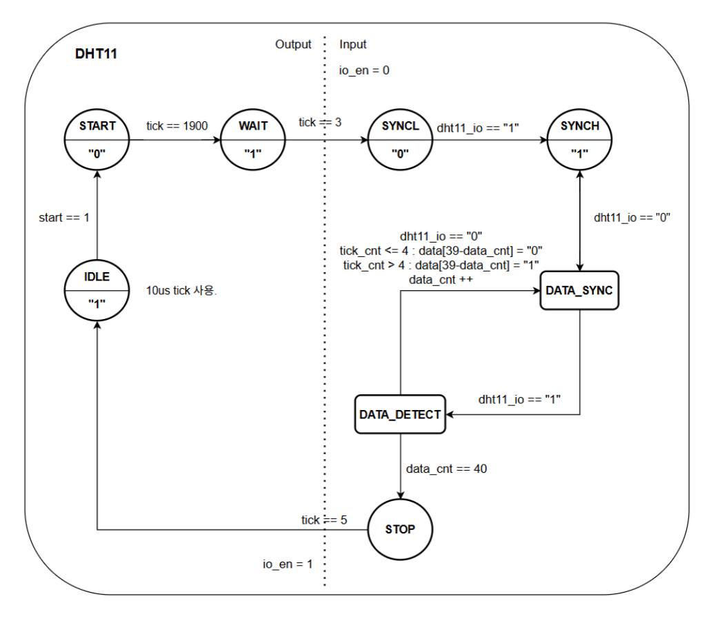 - DHT11_CNTL : DHT11 센서 데이터 수신 FSM 제어