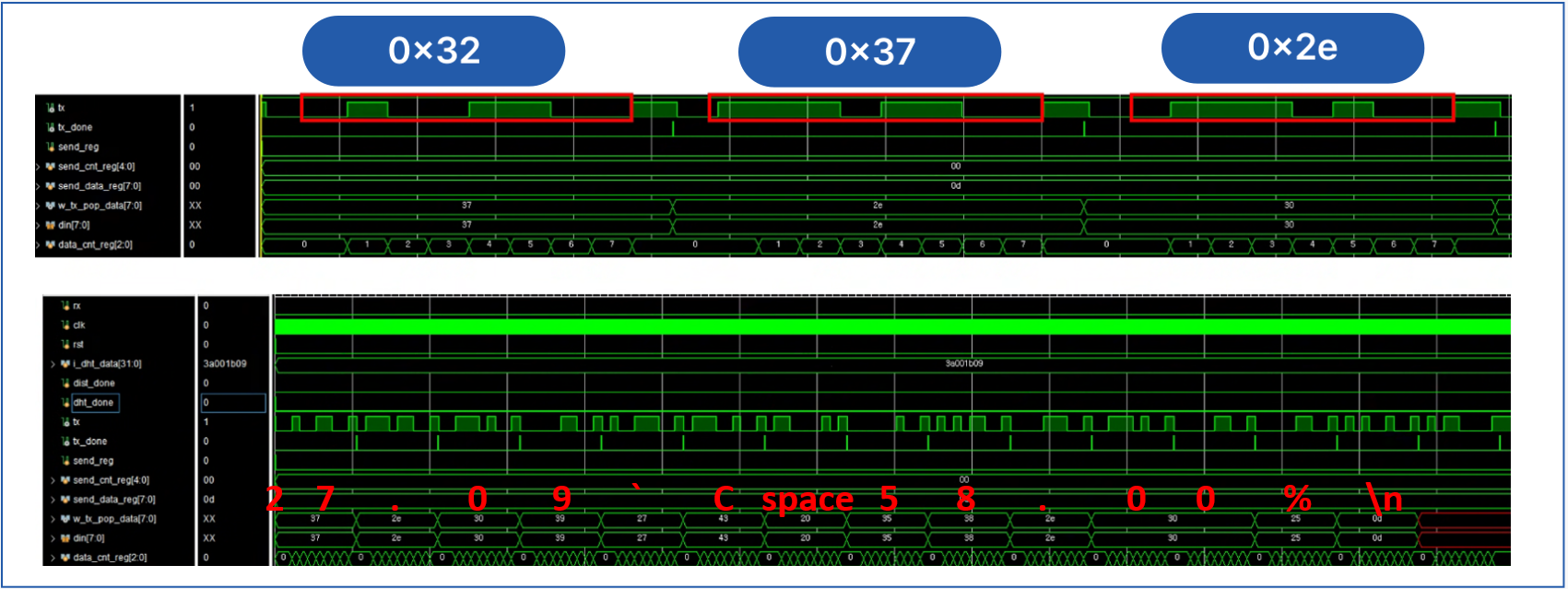 - 원인 분석 : 데이터를 다 받으면 dht11_io 신호가 1로 발생하지 않아 상태가 넘어가지 않음.