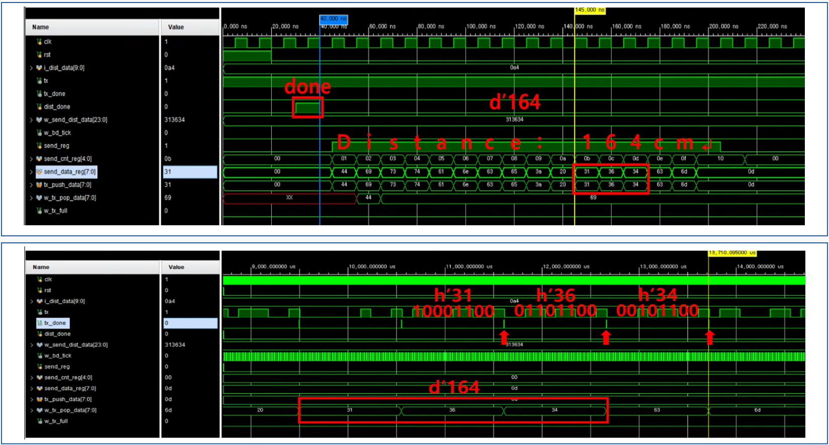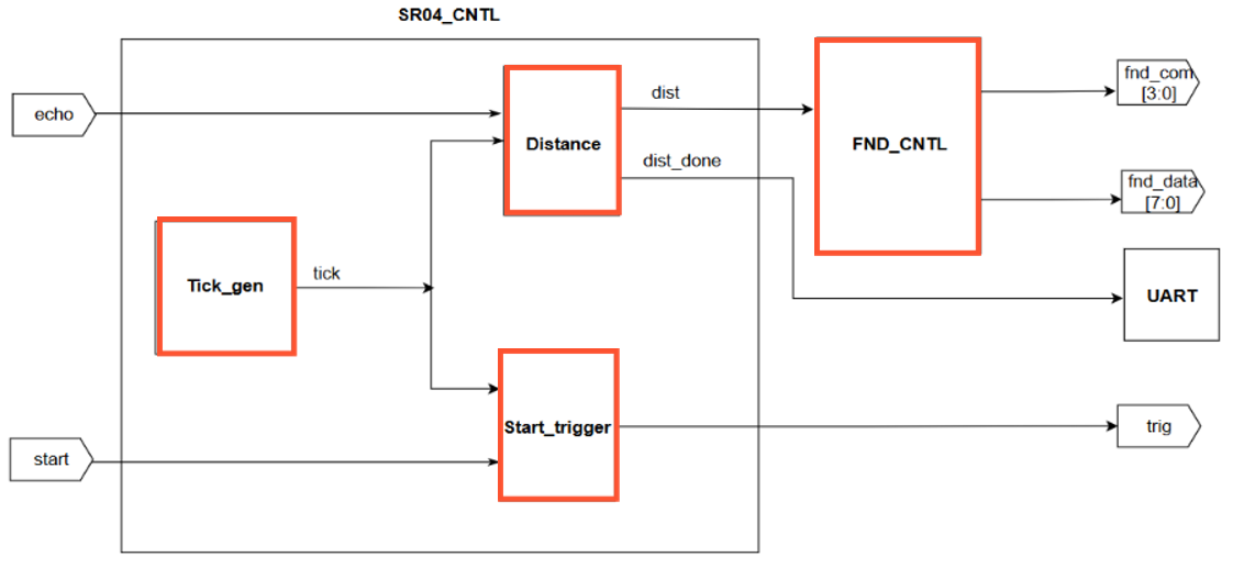 - 원인 분석 : SR04 CTRL에 측정된 Distance 값 -> UART_Sender로 전달.