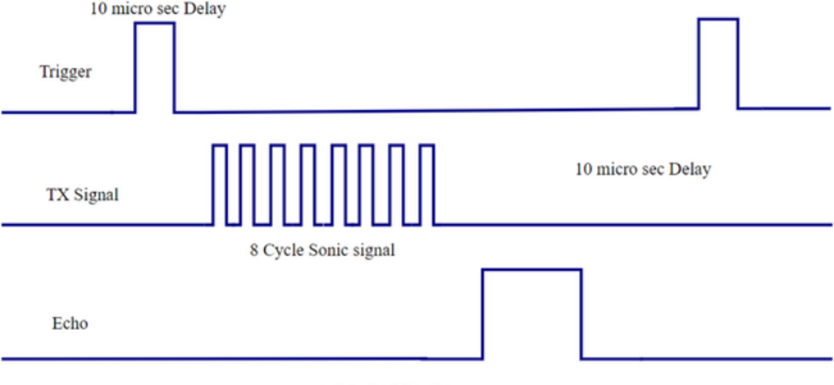 - Trigger 핀에 10us의 펄스 -> 초음파 발생