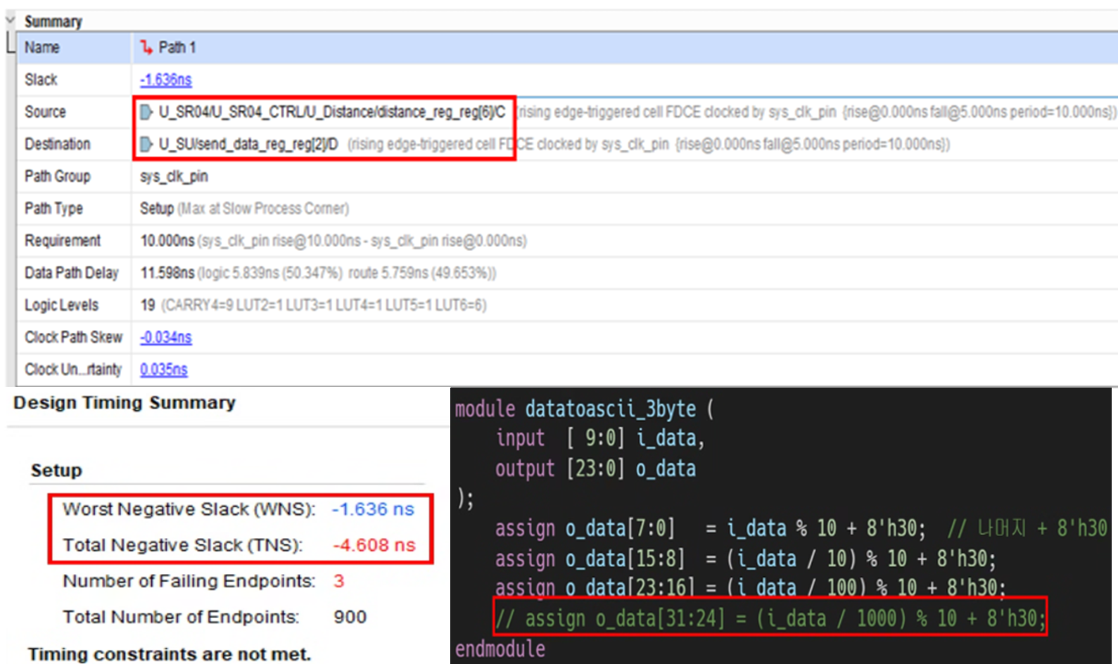 - 문제 상황 : 최종 merge 후 Negative Slack 발생. (-4.608ns)