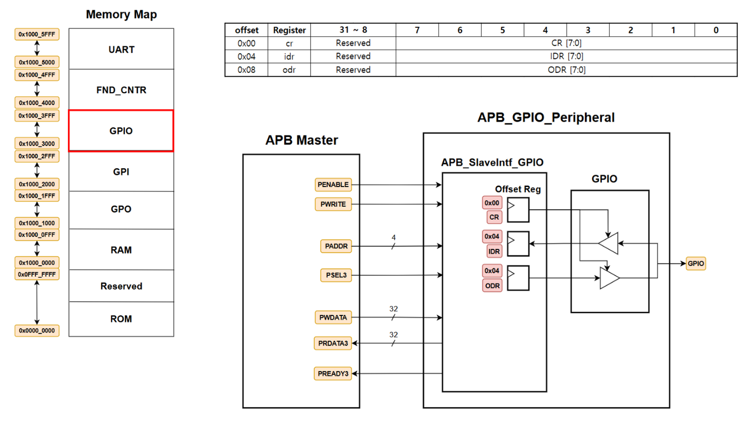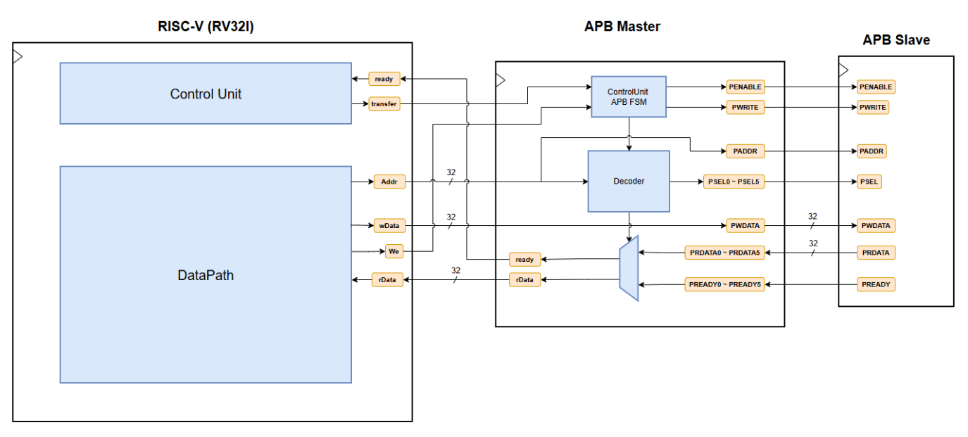 - RV32I CPU에 APB Bus를 붙이고, 주변 장치들을 직접 설계, 연동하면서 실제 MCU와 유사한 시스템을 구축해 봄.